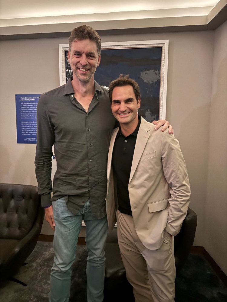 9月22日讯 今天,前NBA球员保罗-加索尔在社媒上晒出了和网球名将费德勒的合影。