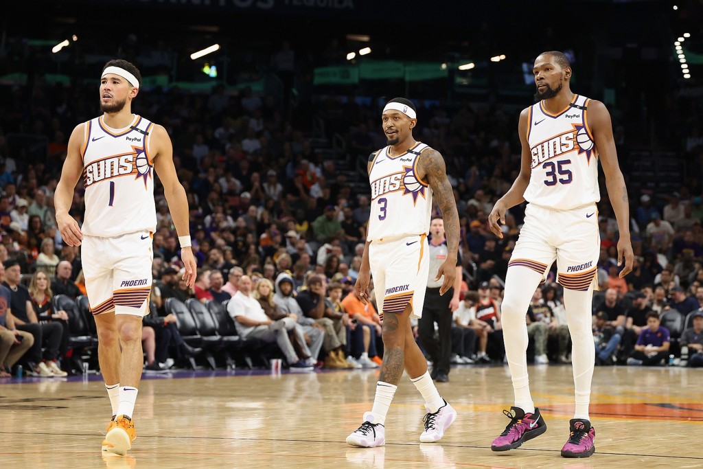 - 太阳队通过交易得到了布拉德利-比尔,23-24赛季后者与杜兰特和德文-布克组成了新的三巨头。但他们只一起打了41场比赛。布克缺席了14场比赛,比尔缺席了29场。